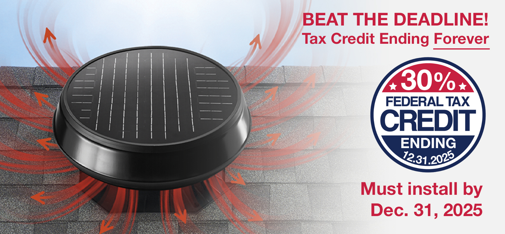 Our solar-powered attic fans combine advanced motor technologies with progressive innovative designs, providing exceptional power and performance. This superior ventilation system effectively removes hot air and moisture from your attic all day and into the night, ensuring it stays cool and dry. Enjoy greater comfort in your home, a longer-lasting roof, and a more efficient air conditioner. Plus, our fans are powered by the sun, so you save energy and reduce utility bills with whisper-quiet operation. Don’t miss out on big savings! Install a solar attic fan today and take advantage of a 30% Federal Tax Credit!